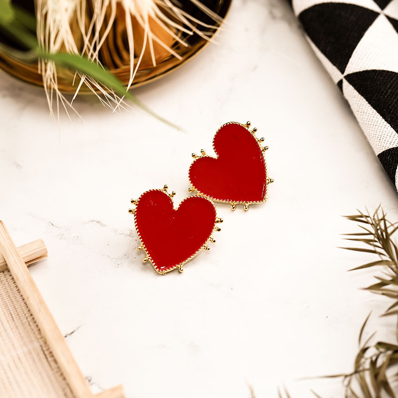 2019 New Design Punk Gold Edge Red Acrylic Heart Stud Earrings For Women Bohemian Big Stud Earring Christmas Jewelry Gift