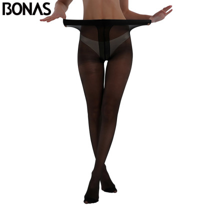BONAS 15D Tights Women Nylons Thin Pantyhose Tear Resistant Nylon Panty T Crotch Sexy Tight Fashion Female Stockings Europn Size